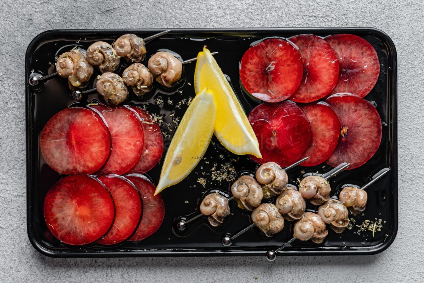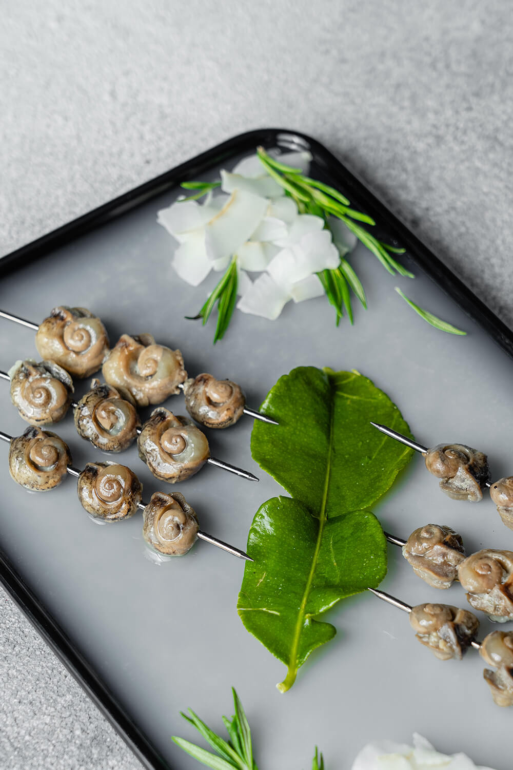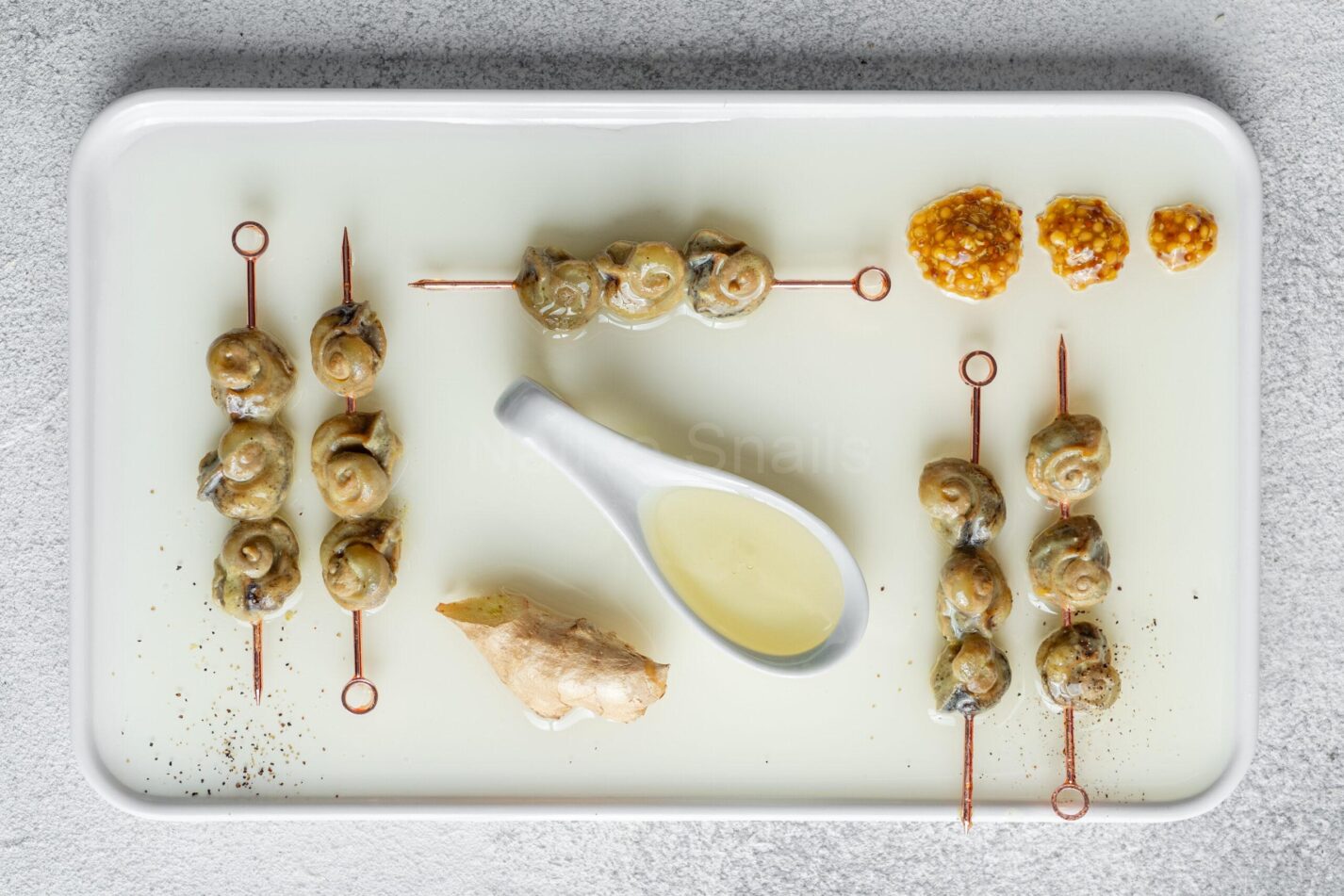 Los caracoles son caracoles secos y cocidos que adquieren un sabor especial gracias a salsas y especias. Su ternura y jugosidad los convierten en una excelente adición a cualquier menú.