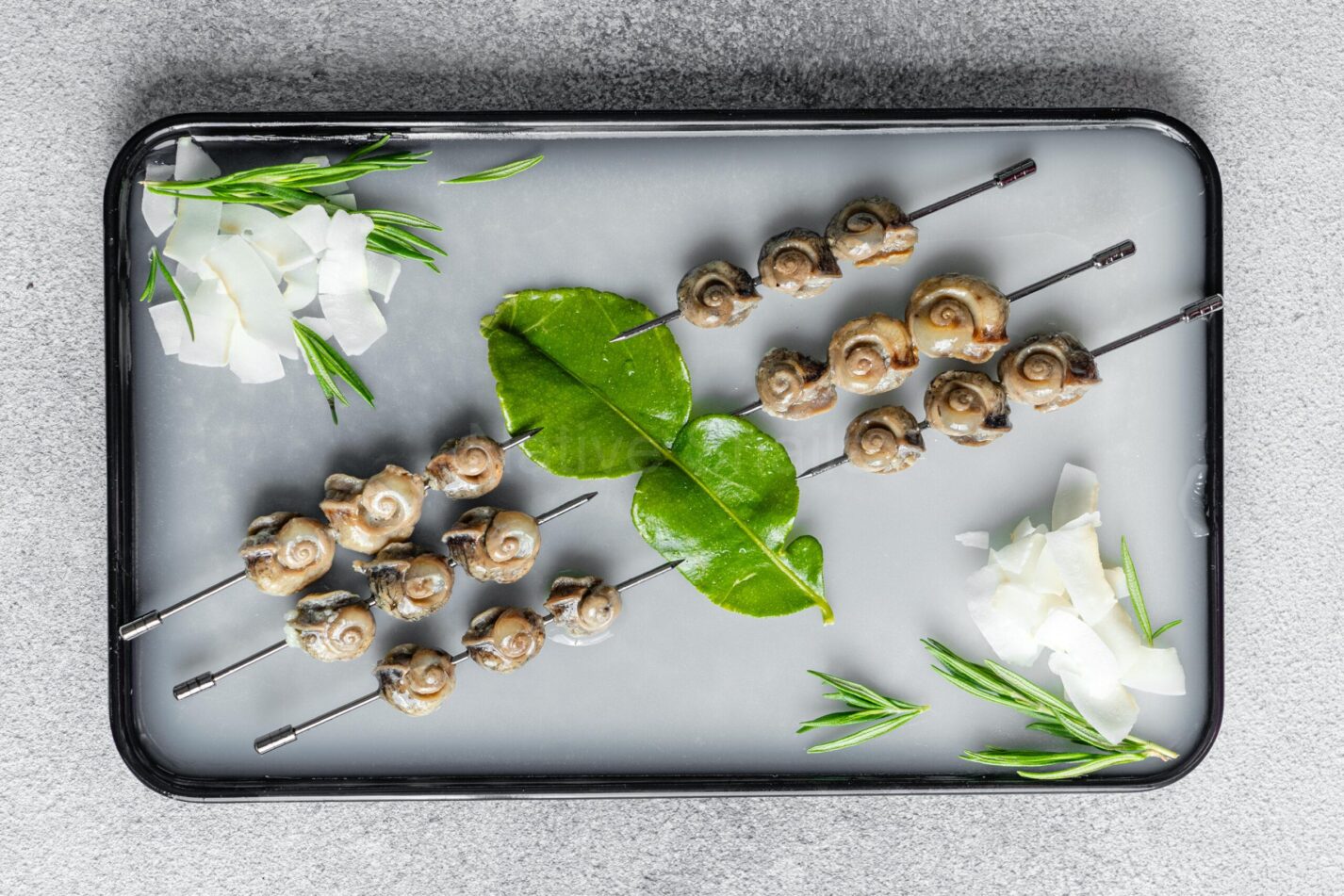 • 165 g (filete de caracol -100 g, marinada -65 g). Las desviaciones admisibles de la cantidad nominal del producto son ± del 5%.