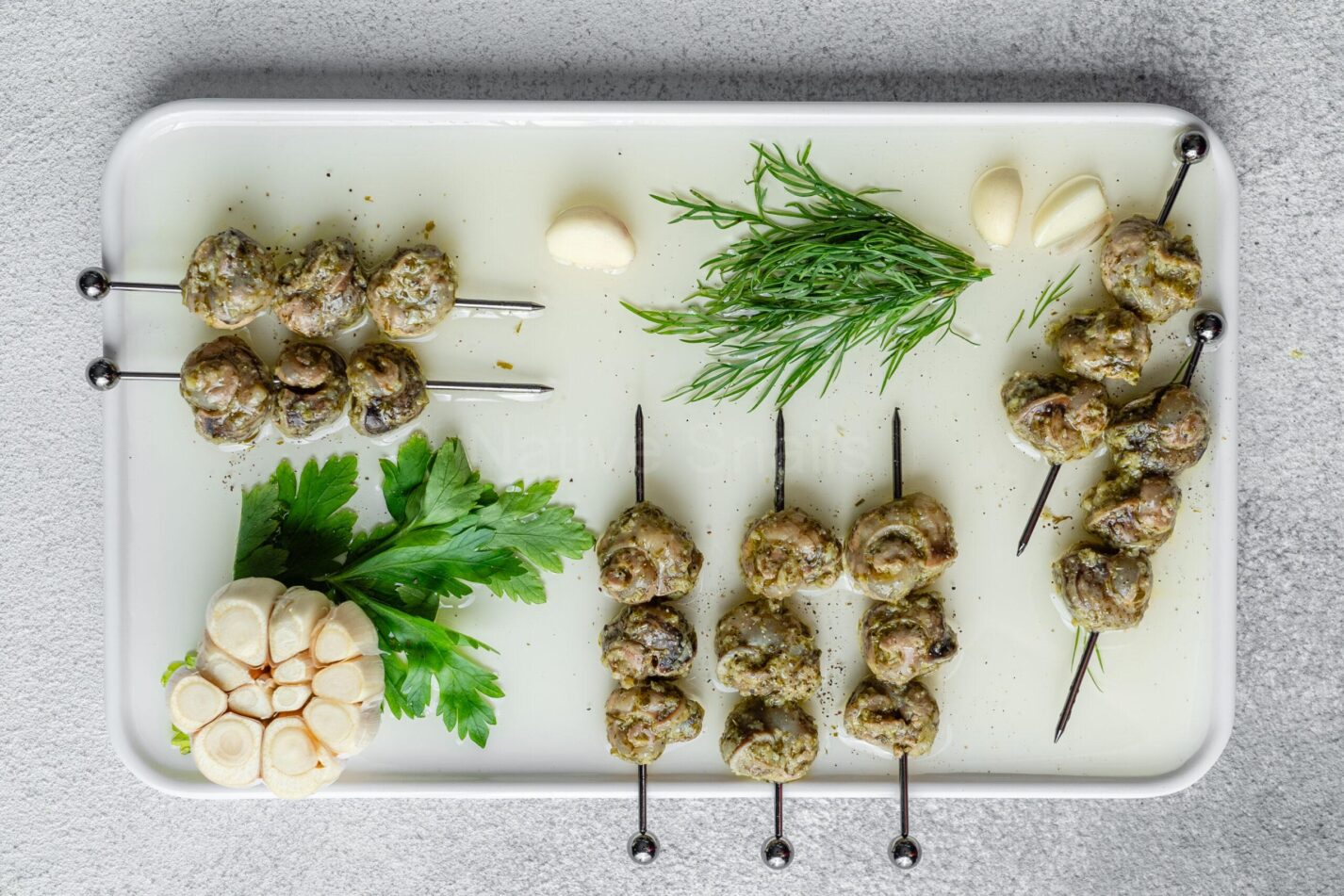 • 165 g (filete de caracol -100 g, marinada -65 g). Las desviaciones admisibles de la cantidad nominal del producto son ± del 5%.