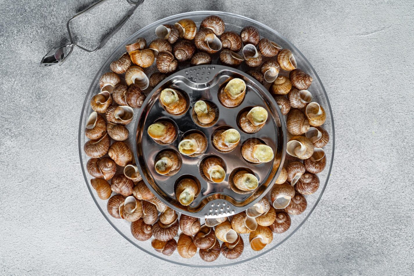 Precalentar el horno a 180-200 C, retirar el film superior de la placa y meter en el horno durante 8-10 minutos. Al final de la cocción, saca un plato con los caracoles. Consumir con un tenedor o brocheta para caracoles, sacando la carne del caparazón y vertiendo la salsa sobre el pan.